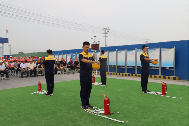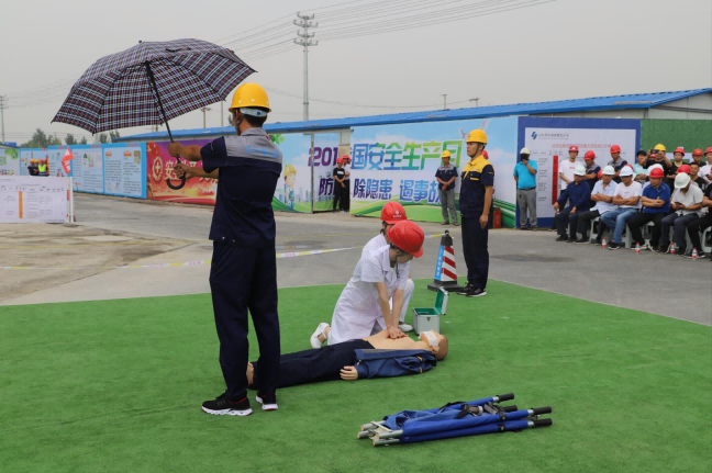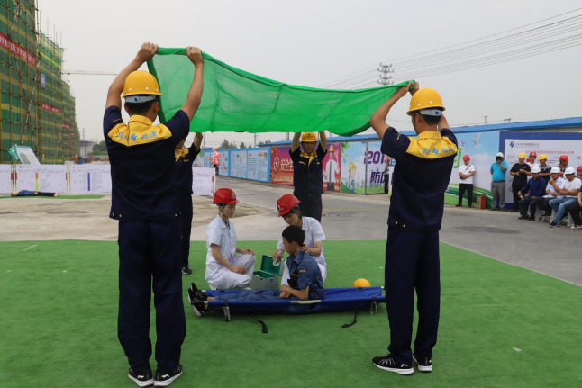 應(yīng)急救援演練現(xiàn)場首先進(jìn)行了安全帽、安全帶佩戴及滅火器使用展示、中暑應(yīng)急救援演練、骨折應(yīng)急救援演練、朗誦《我相信,你相信嗎》、觸電應(yīng)急救援演練等一系列安全應(yīng)急救援演練項(xiàng)目。演練貼近實(shí)戰(zhàn),過程緊湊,組織開展有序。此次演練對提升現(xiàn)場安全事故應(yīng)急水平,提高工人安全素質(zhì),應(yīng)對突發(fā)事件的組織協(xié)調(diào)能力必將起到積極的作用。