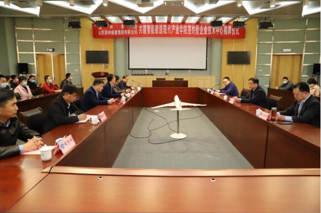 曹慶訓(xùn)與李長(zhǎng)海共同為“智能建造現(xiàn)代產(chǎn)業(yè)學(xué)院”、“山東濱州城建集團(tuán)有限公司企業(yè)技術(shù)中心”揭牌。